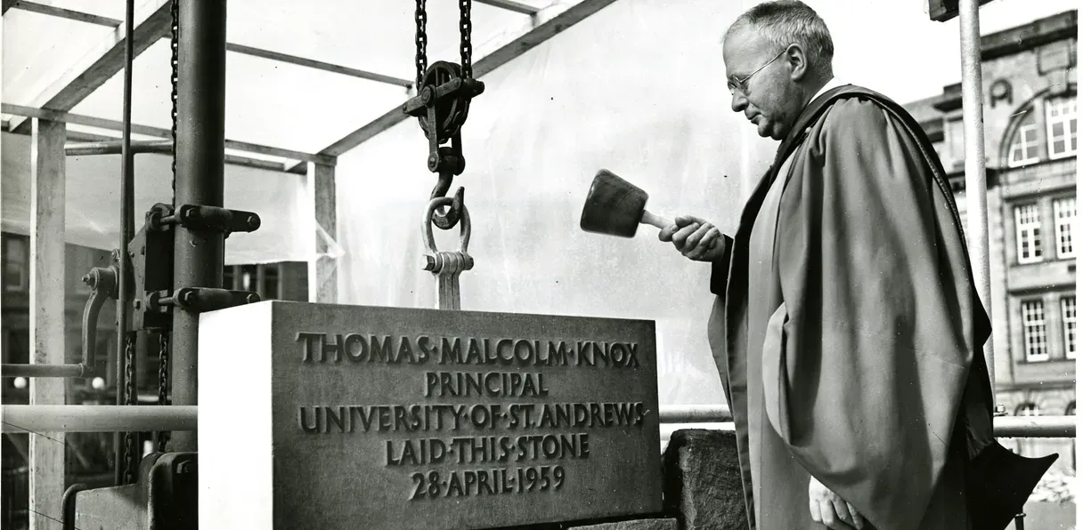 The original partnership with St Andrews had been formally recognised in 1897, when the fledgling University College, Dundee was linked to the long-established university across the Tay. If you walk around the campus today, you'll still see reminders of this earlier association - just outside the Tower Building, for example, you'll find a plaque bearing the crest of the University of St Andrews.